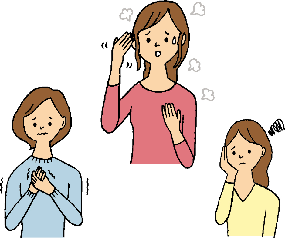 いわゆる「ホットフラッシュ」と呼ばれるのぼせやほてり、発汗に加えて不眠や疲労感、不安感やイライラなど、人により症状はさまざま。主な原因は女性ホルモンの分泌が低下することなのですが、子育てや介護、仕事などの疲労やストレスが重なることで不調を強く感じる人もいます。