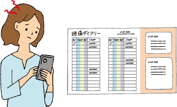 もうひとつおすすめしたいのが、頭痛の様子を記録する『頭痛ダイアリー』の活用です。自分がどのような刺激に弱く、どんな状況で頭痛が起きやすいかという「頭痛が起きるパターン」がつかめれば、早めの対処ができるようになります。