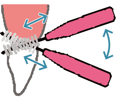 歯ブラシはペンを持つように握り、歯と歯茎の根元に45度の角度で押し当てて細かく動かしましょう。力が強いと歯の根元のやわらかい部分が削れて歯周病が悪化します。ひじが上がるのは力を入れすぎているサインなので要注意。