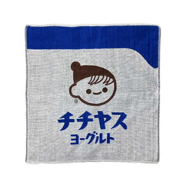 チチヤスヨーグルトをモチーフにしたガーゼハンカチ。