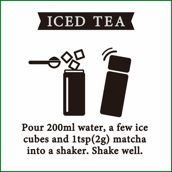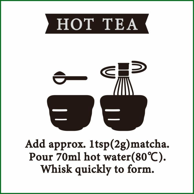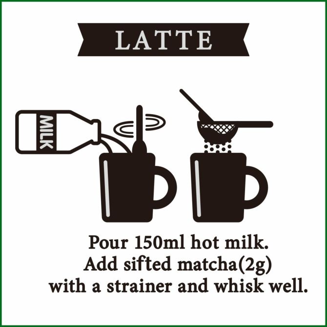 お菓子作りやお料理での使用、ミルクを混ぜて抹茶ラテとしてもお飲みいただけます。 枯山水をイメージしたパッケージでお土産やギフトにもおすすめです。海外の方にもわかりやすく、内袋に英語とイラストで抹茶の飲み方を紹介しています。