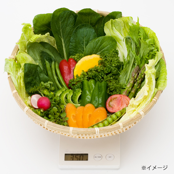 - にんじん、トマト、アスパラガス、赤ピーマン、ほうれん草、モロヘイヤ、グリーンピース、インゲン豆、レタス、ゴーヤ、きゅうり、大根、ピーマン、メキャベツの葉、ケール、カリフラワー、冬瓜、緑豆スプラウト(もやし)、ブロッコリー、ごぼう、セロリ、かぼちゃ、ヤーコン、あしたば、小松菜、、パセリ、クレソン、キャベツ、ラディッシュ、三つ葉、レモン