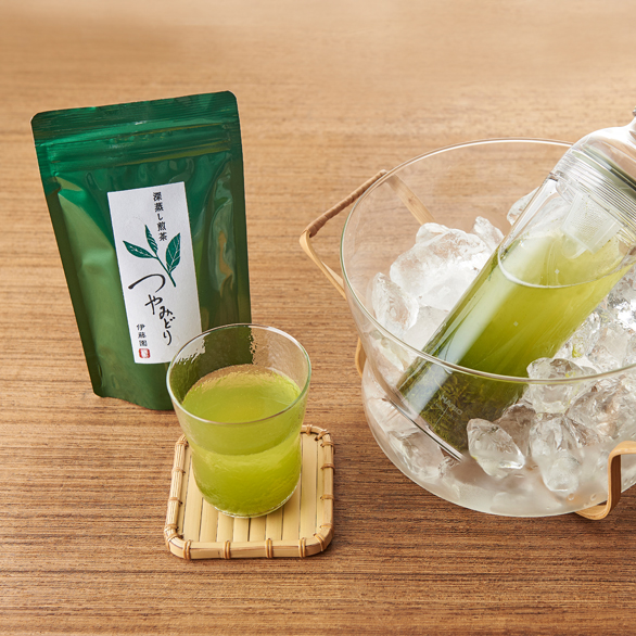 「つやみどり」の産地は、静岡県の中でも南部に位置する牧之原市・勝間田地区です。温暖な気候、長い日照時間、水はけが良い赤土がお茶の栽培に適しています。 その茶葉はしっかりと肉厚に育つため、一般的な煎茶よりも長く蒸す深蒸し煎茶に向いています。その中でも「つやみどり」は、お茶のおいしさがたっぷり詰まった一番茶を100%使用しています。
