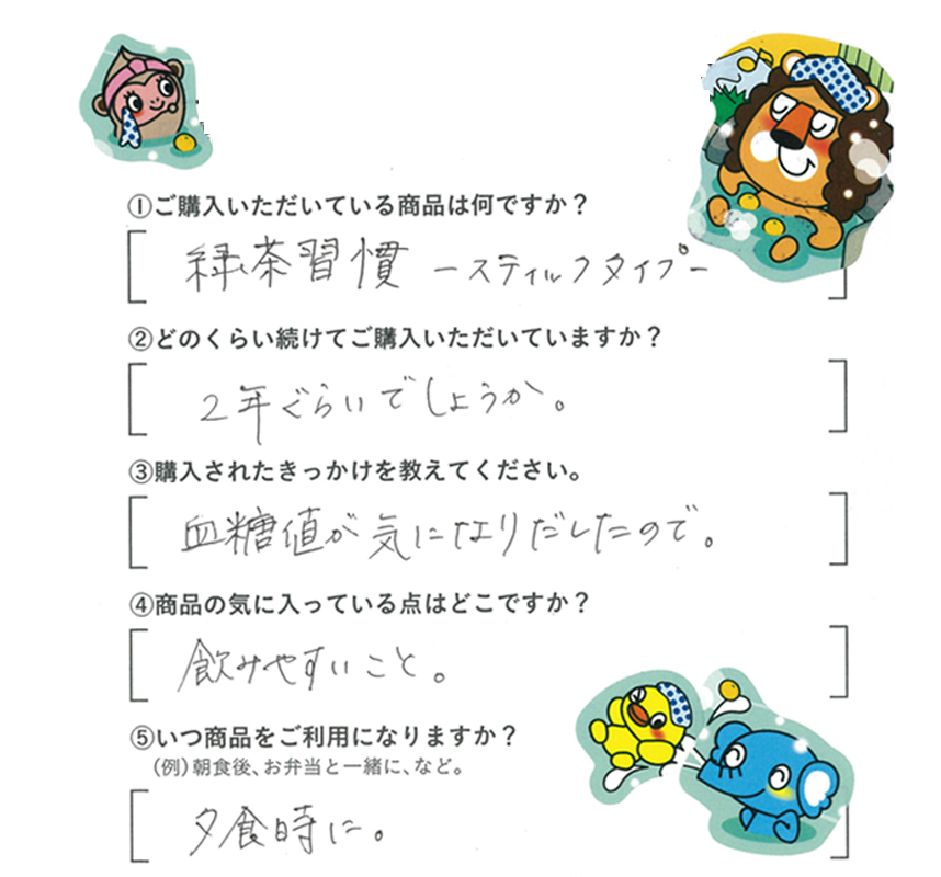 - 血糖値に異常を指摘された方や、現に糖尿病の治療を受けておられる方は、医師にご相談の上ご使用ください。飲みすぎ、あるいは体質・体調により、おなかがゆるくなることがあります。本品は食後の血糖値が気になりはじめた方の食生活改善のための食品としてご使用ください。