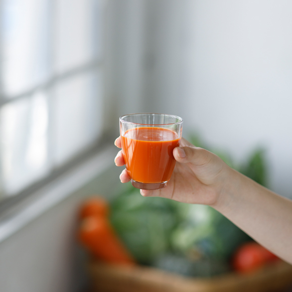 この1本に野菜を「ぎゅっと」凝縮しているため、にんじん「朱衣」を主体とした野菜の甘みが際立つ、濃厚な味わいです。