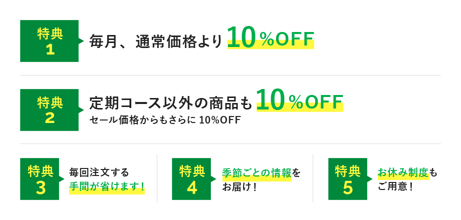 毎回ご注文いただかなくても、お得な価格で、定期的にお届けする「定期コース」をおすすめしております。