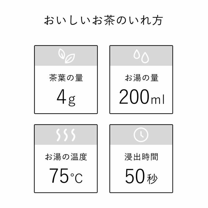 | 茶葉の量 | お湯の量 | お湯の温度 | 浸出時間 |