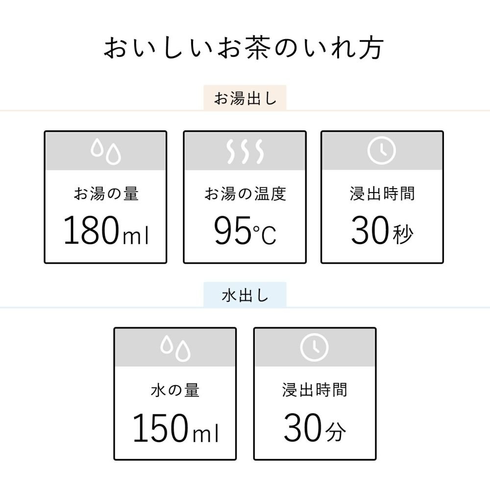 | 180ml | 約95℃ | 約30秒 |