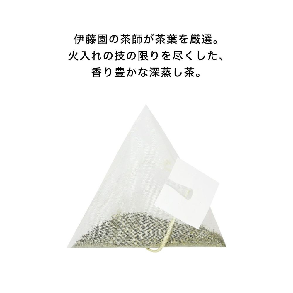 香り絶品な深蒸し煎茶を、お手軽にお楽しみいただけるようティーバッグでご用意しました。深蒸しでありながら、当社独自の火入れ技術※『新・後火仕上げ製法』により、強い香り立ちを実現し、香ばしい香りの『火香(ひか)』と、のど越しに感じる甘い香りの『甘香(あまか)』が秀逸です。