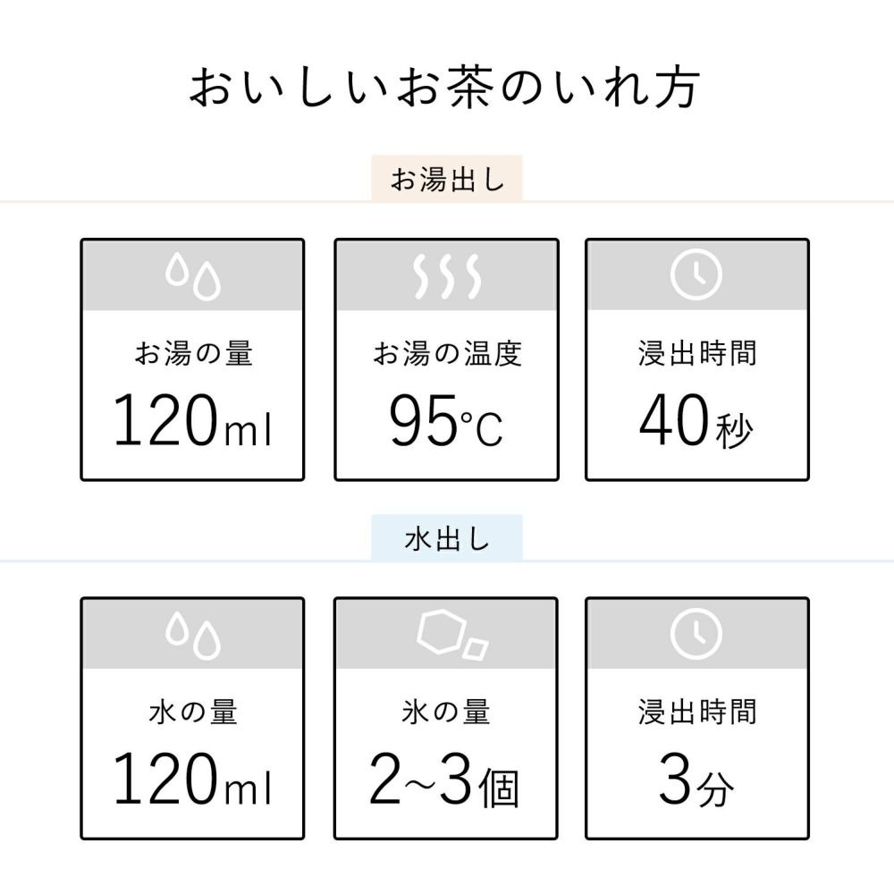 | お湯の量 | お湯の温度 | 浸出時間 |