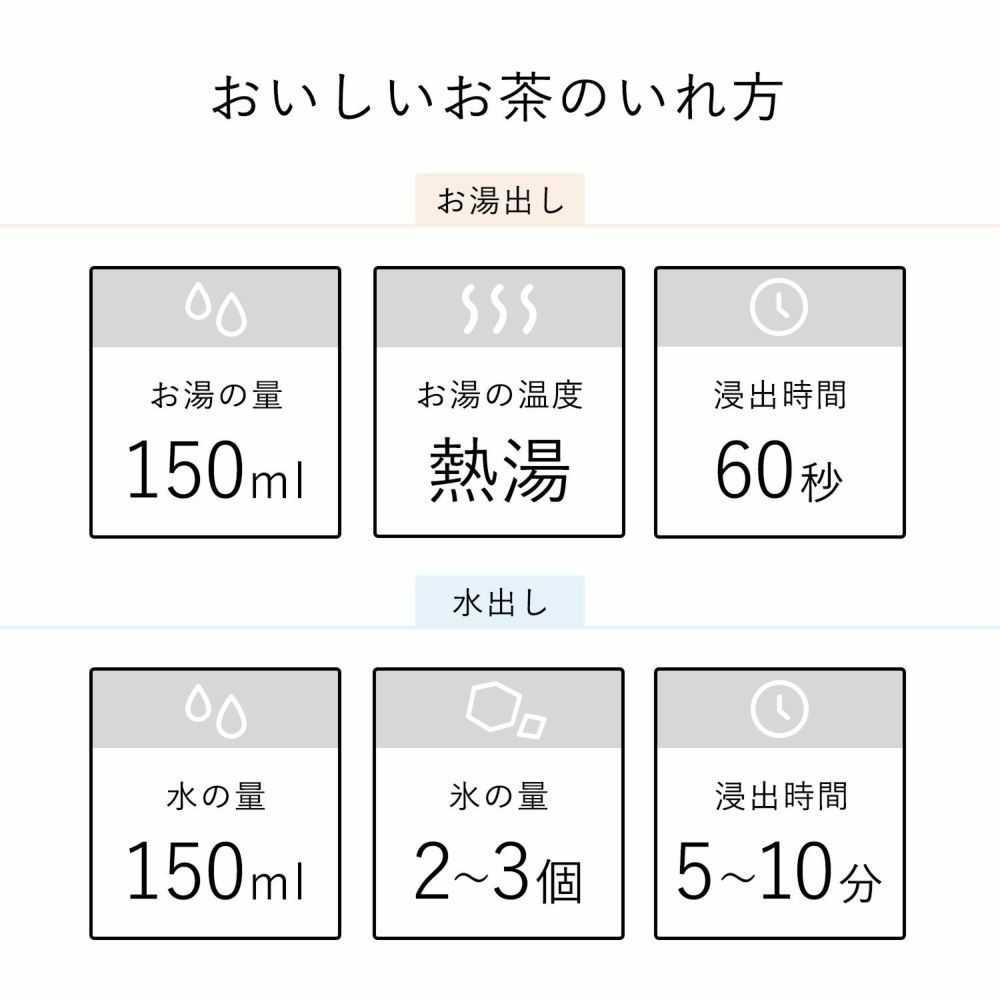 | 150ml | 熱湯 | 約60秒 |