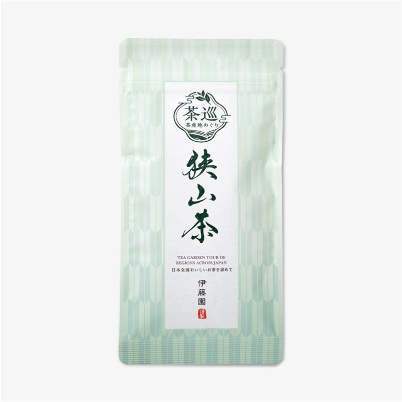 静岡茶、宇治茶とともに、三大銘茶として謳われています。和紙を使用した茶袋に、和文様の「矢絣(やがすり)」をあしらったデザインを採用しています。【埼玉県 狭山茶】
