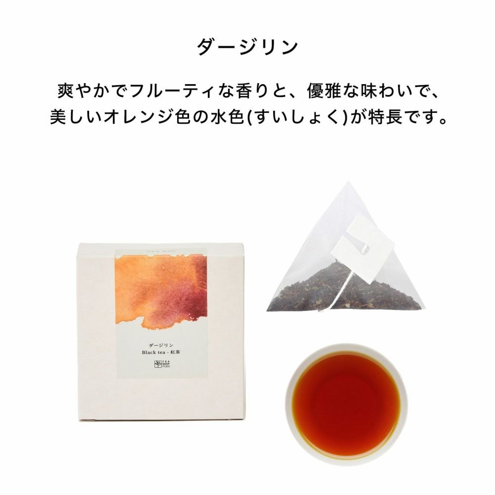 ●ダージリンインドを代表する紅茶の産地、ダージリン。 爽やかでフルーティな香りと、優雅な味わいで、美しいオレンジ色の水色(すいしょく)が特徴です。 ストレートやミルクなどお好みでおたのしみいただけるお茶です。