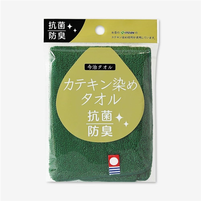 お茶(緑茶)の渋味の主成分であるカテキン(※1)を用いて染色した抗菌・防臭効果のある「今治タオル(※2)ハンカチ(カテキン染め)」です。※1:繊維の安全性の世界基準である「エコテックススタンダード100」の認可を受けた茶カテキンを使用。カテキンはポリフェノールの一種で、昔からタンニンと呼ばれてきた緑茶の渋味の主成分です。カテキンの語源は、インド産のアカシア・カテキュー(マメ科アカシア属の低木)の樹液から採れる“カテキュー”に由来しています。このカテキンの健康性が近年クローズアップされています。
