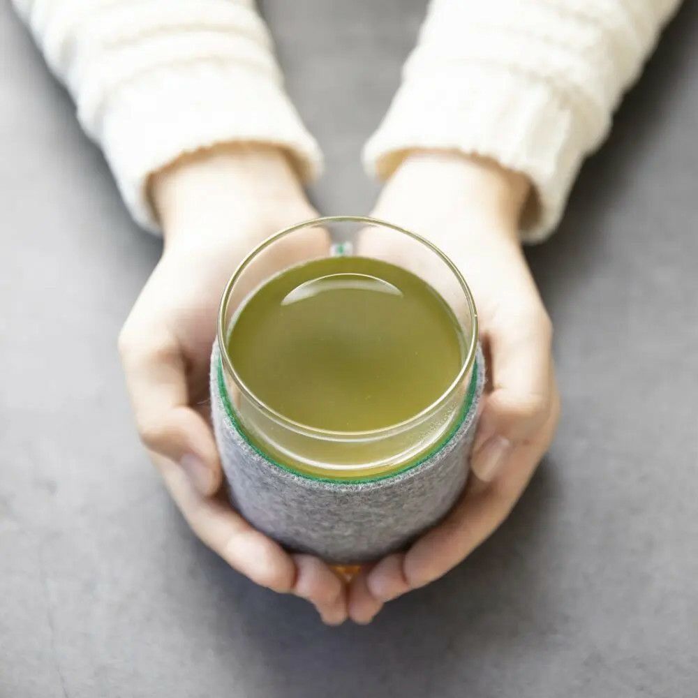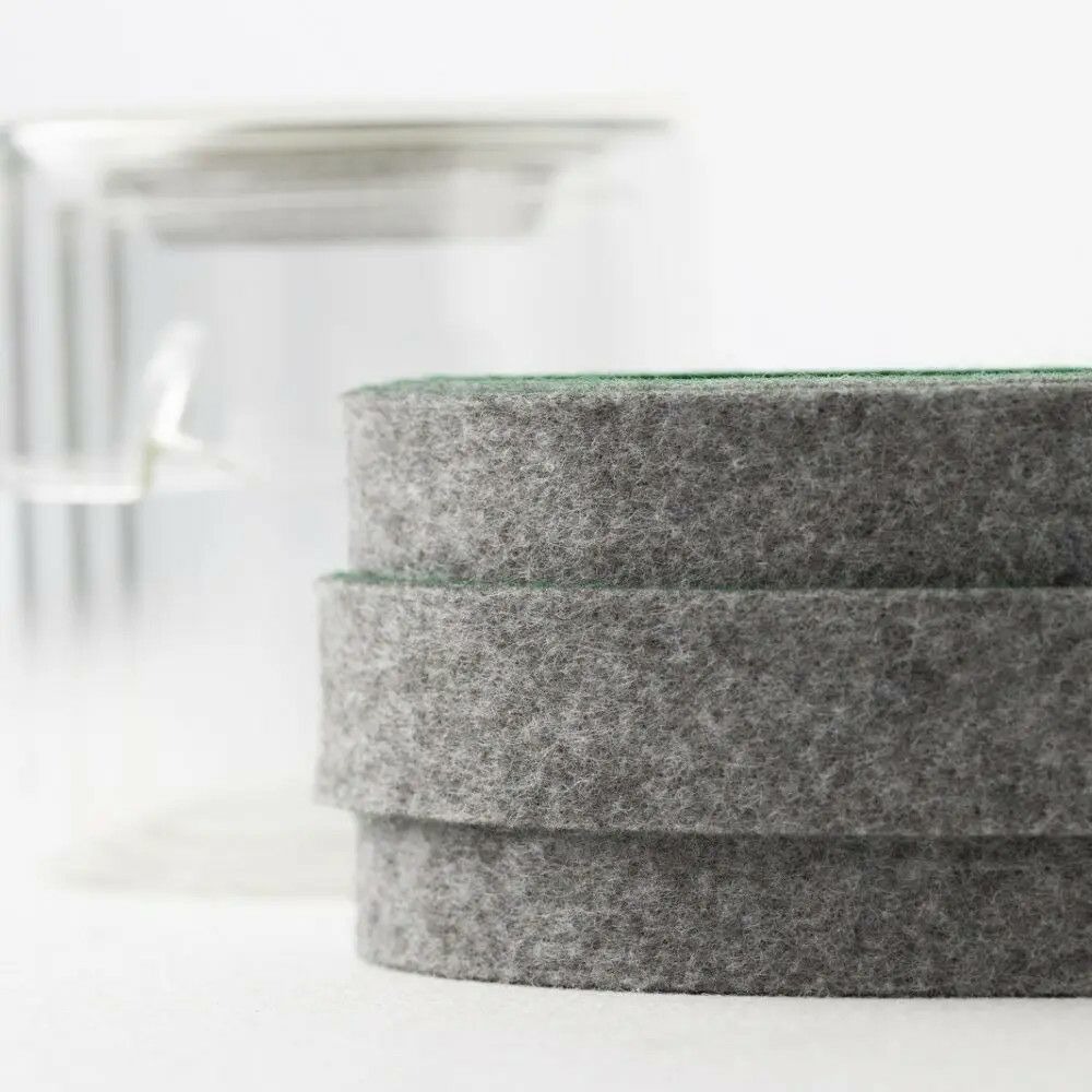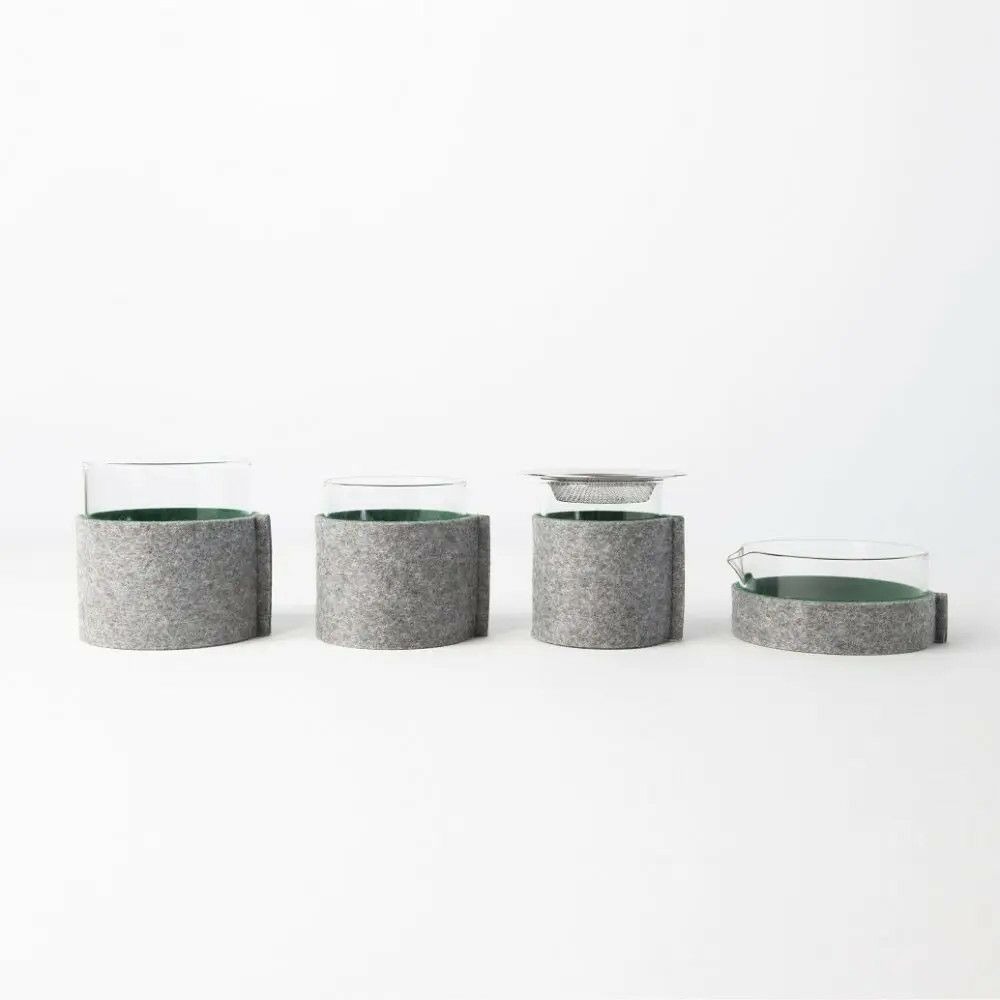 ライトグレーとグリーンのツートンカラーが印象的。やわらかなフェルトが優しくグラスを包みます。【使用上の注意】
