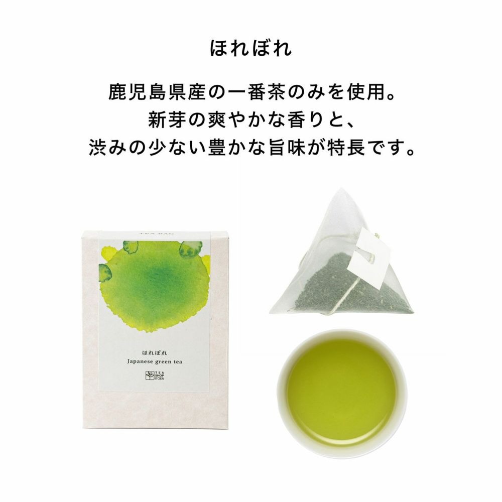 ●ほれぼれ 2.5g×5袋TEA SHOP ITOEN人気No.1の緑茶。陽の光を遮って栽培した鹿児島県産の一番茶のみを使用しています。 新芽の爽やかな香りと、渋みの少ない豊かな旨味、鮮やかな緑色の水色(すいしょく)を引き出すため、しっかり蒸した茶葉を丁寧に選り分け、後火仕上げしました。