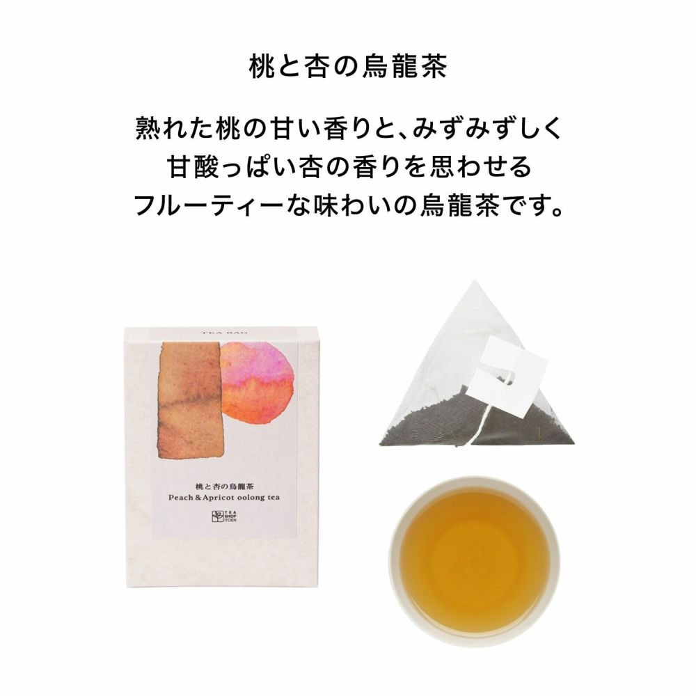 熟れた桃の甘い香りと、みずみずしく甘酸っぱい杏の香りを思わせるフルーティーな味わいの烏龍茶です。 果実感を再現する為に、ベースになる烏龍茶の選定からブレンド設計を見直し、こだわりのテイストに仕上げました。 ホットではもちろんのこと、爽やかなアイスティーにもおすすめです。