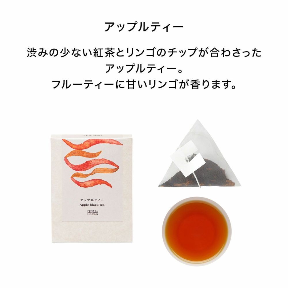 渋みの少ない紅茶とリンゴのチップが合わさったアップルティー。フルーティーに甘いリンゴが香ります。