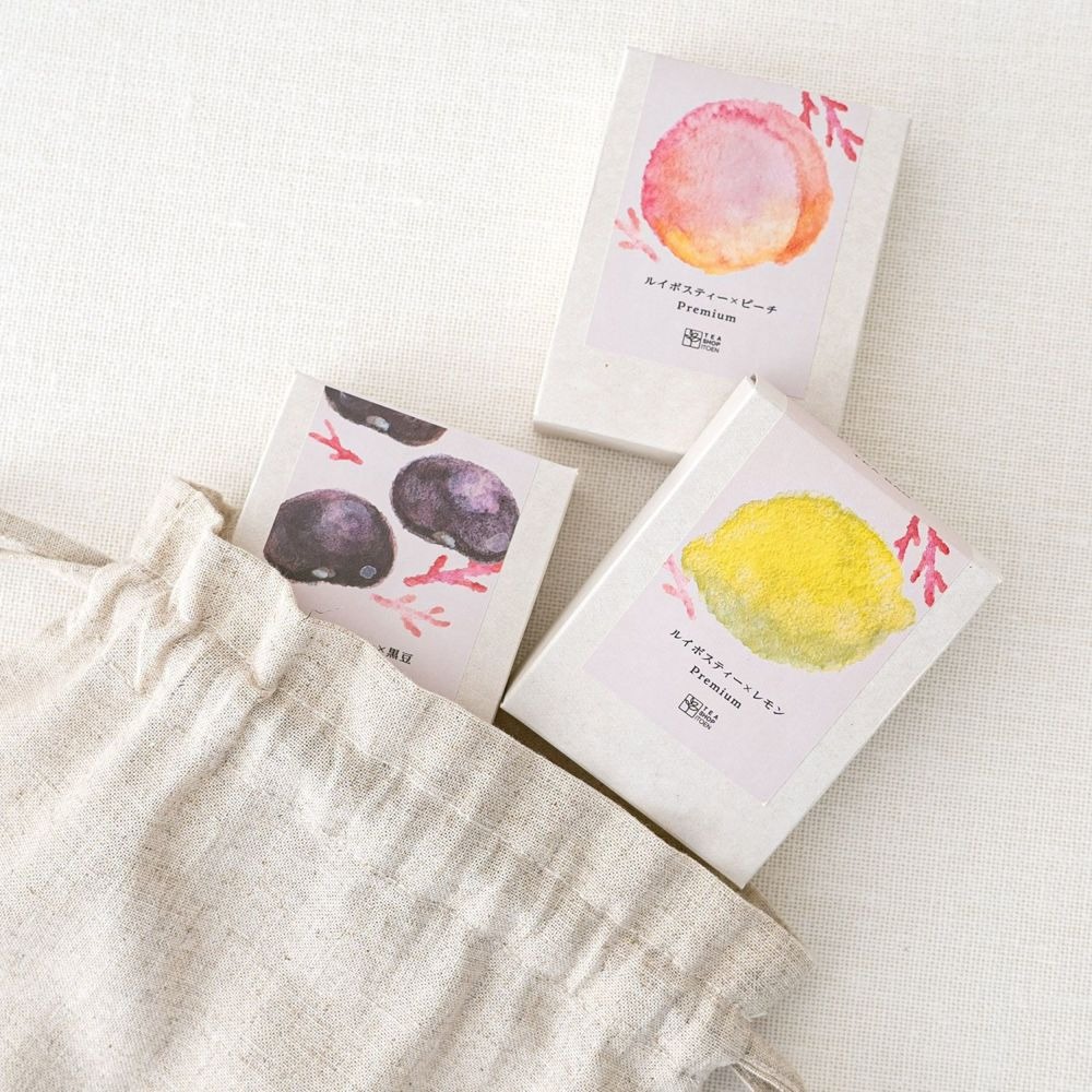 北海道産黒豆を使用。黒豆の香ばしい香りと、まろやかなルイボスの味わいを感じられるルイボスティー。