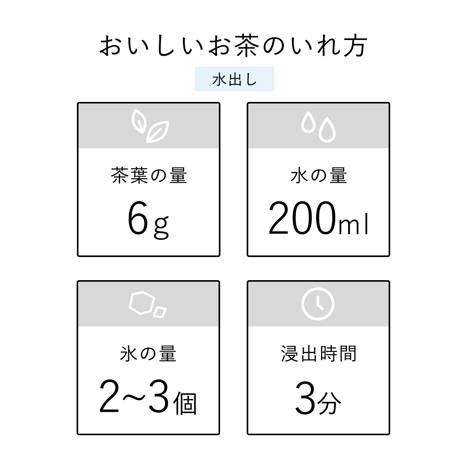 | 茶葉の量 | 水の量 | 氷の量 | 浸出時間 |