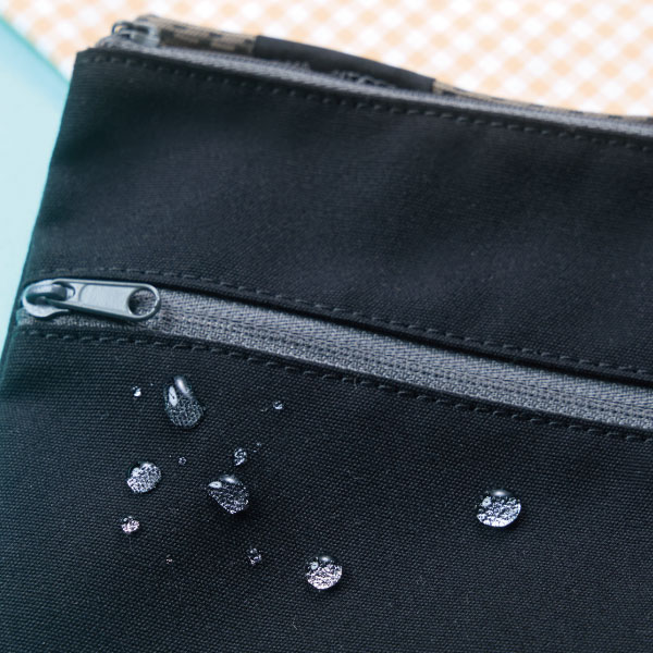 ・本体の表生地には弱撥水加工を施しておりますが、ファスナー・タグ部分は撥水仕様ではなく、完全防水ではありません。