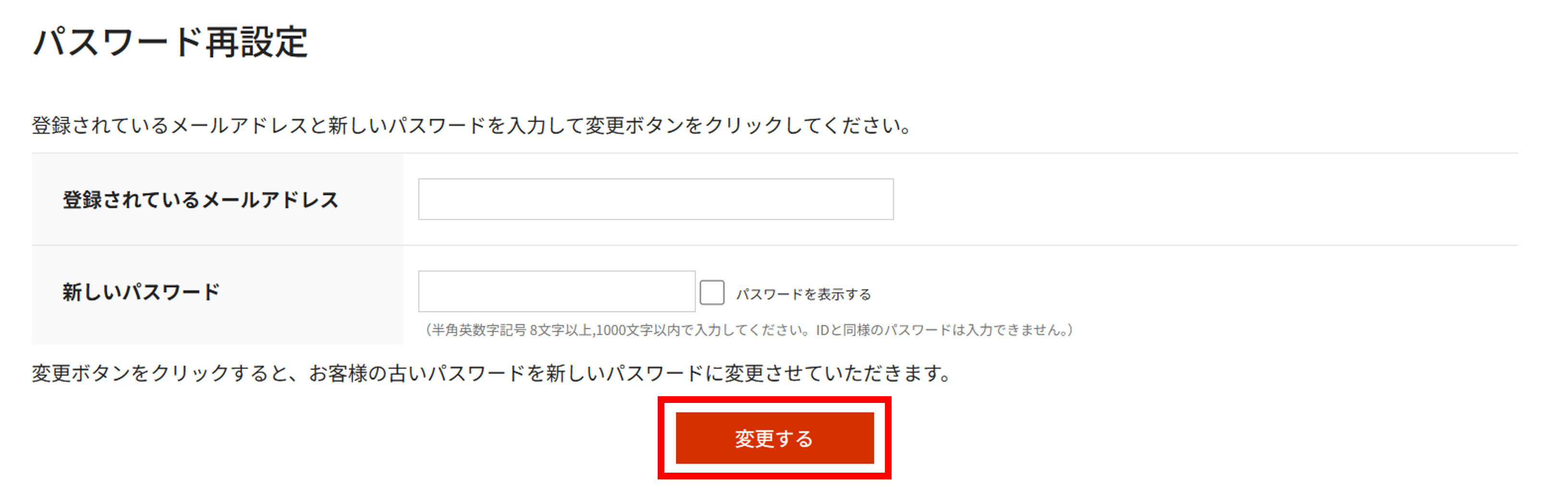 5. 登録されているメールアドレスと、新しいパスワードをご入力ください。