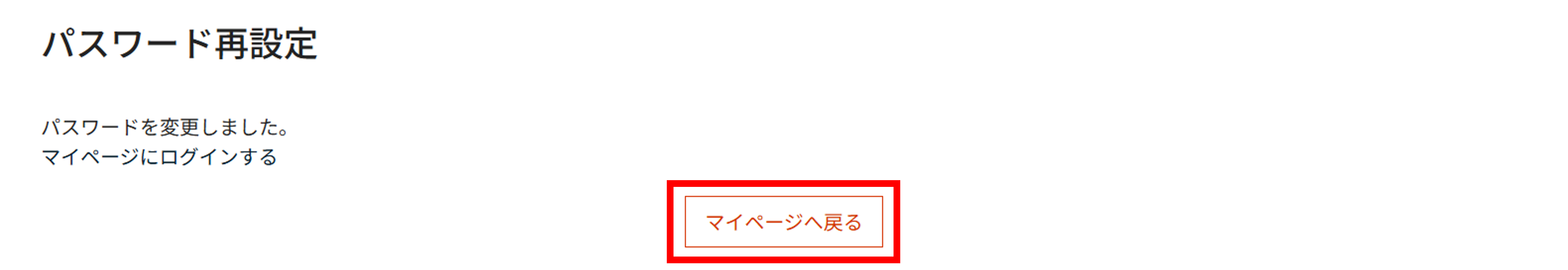 6. パスワードの再設定が完了いたしましたので、「マイページへ戻る」よりログイン画面に戻ります。